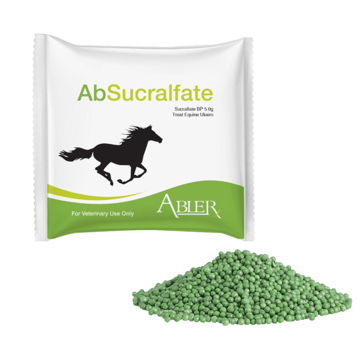 AbSucralfate is a specialized gastric support supplement for horses containing sucralfate, a proven active compound that forms a protective coating over the stomach lining and ulcerated tissue.